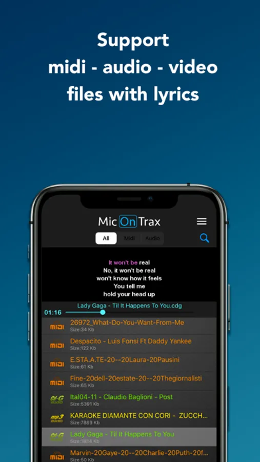 Turn your iPhone / iPad into a music karaoke player that lets you sing, play or practice on your backing tracks.