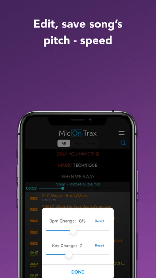 - On all files, you can edit and save both the song's tempo and pitch *