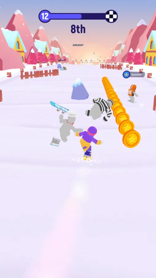 *Choose your favourite character, board and get ready for a exciting ride on the snow track with other opponents!