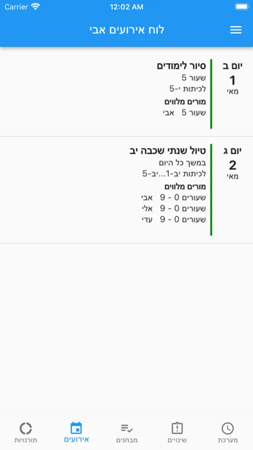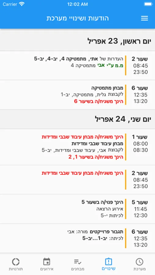 מערכת שעות אישית של מורה והודעות כלליות