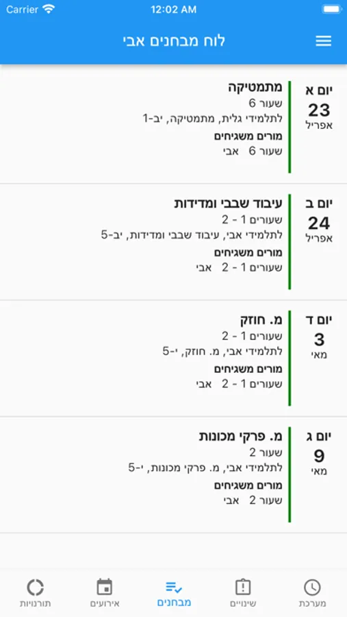 לוח מבחנים