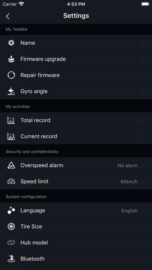 TeeBike is a customized APP for the Teebike powered wheel. TeeBike connects the wheels via Bluetooth, displays wheel status, changes wheel settings, upgrades wheel firmware, etc.