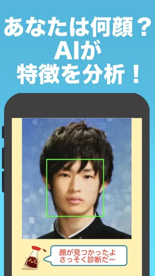 2.写真を選択すると、顔認識が始まります。顔が認識された場合は、診断ボタンまたは、顔をタップすることで人工知能による顔診断が始まります。