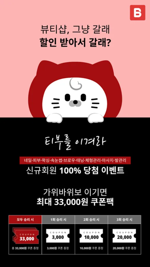 - 신규회원 대상 100% 쿠폰팩 증정 가위바위보 게임