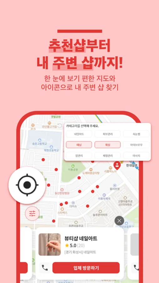 위치기반 내 주변 뷰티샵을 검색하고, 편리하게 예약 및 결제까지.