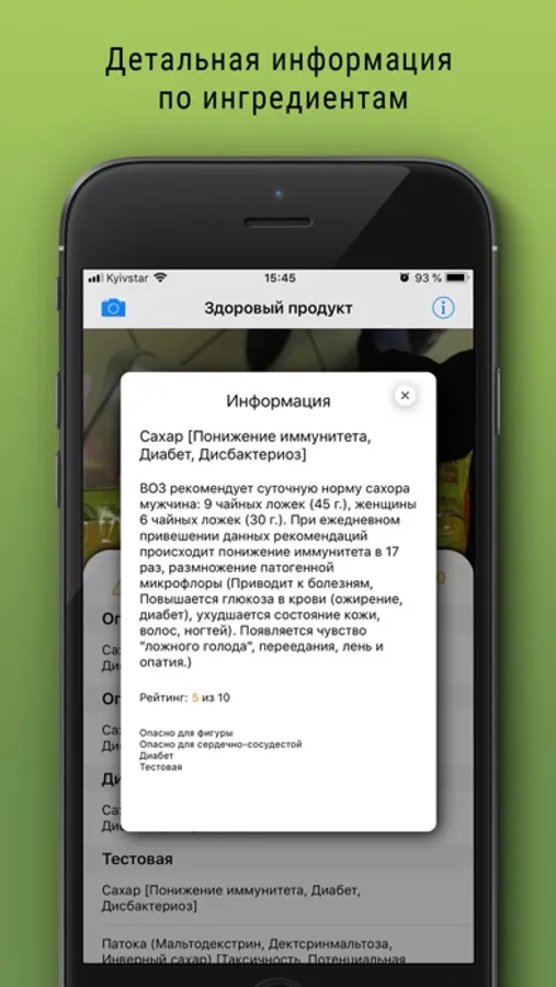 Приложение разработано на основе многолетних исследований, сбора и систематизации научных данных о природе пищевых ингредиентов, их влиянии на здоровье человека. Автор - Лила Ковалевская, - химик, медицинская сестра, диетолог, специалист по безопасности пищевых ингредиентов.