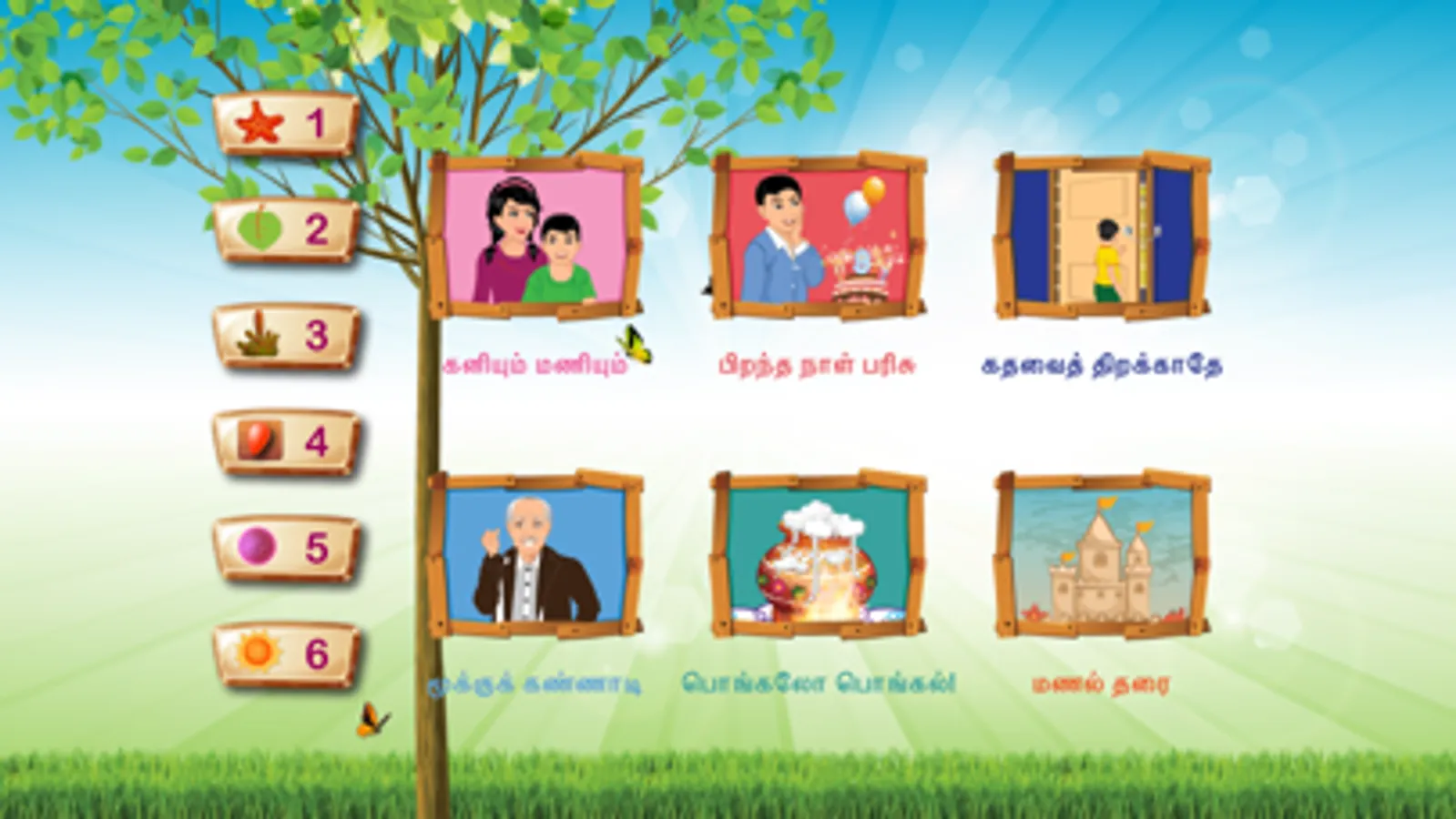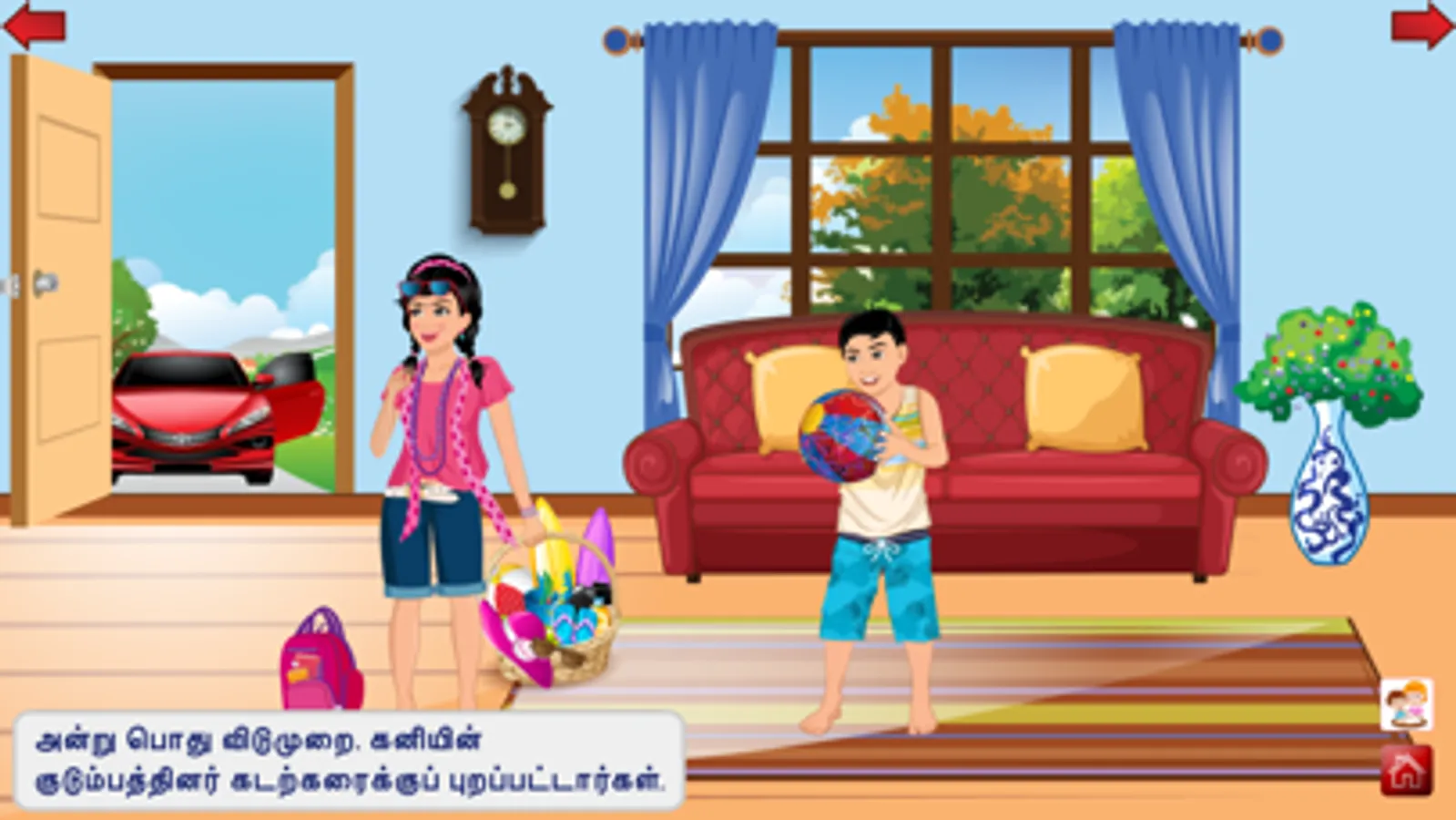 This is the first of a series of interactive and animated eBooks in Tamil for kids. It contains stories and fun activities that help children read stories play games while they learn the Tamil language. The first book introduces the main characters and their family members. There are six stories in this book and six activities in the form of games that introduces words from the stories in a fun and interactive manner.
