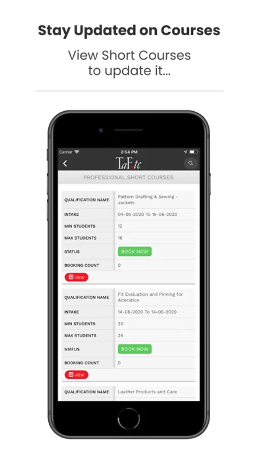 Taf.Tc App provides detail view for the student from various disciplines, preparing them for the following area of fashion industry.