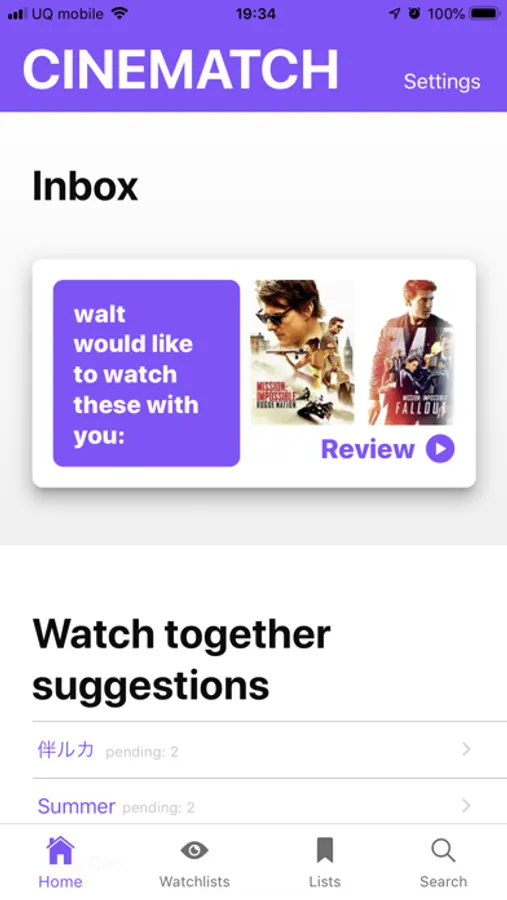 CineMatch is an app for film-lovers that is tailored especially to people who like to watch films together! It is the first app where you can create a shared Watchlist with your film-buddy and both pick and suggest films to add to.
