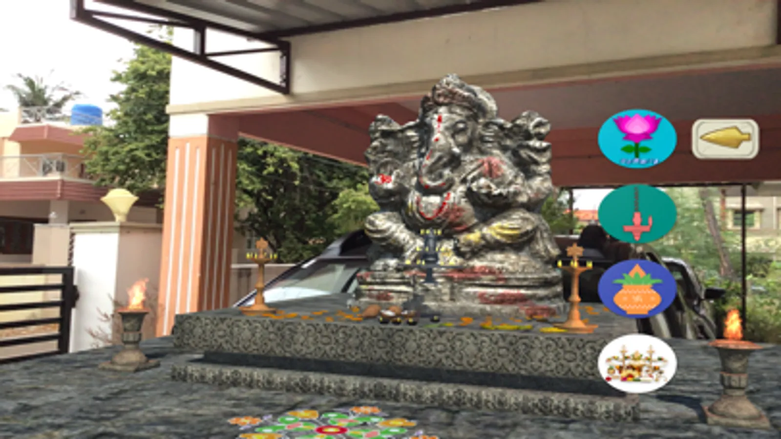Scan your table or surface in front of you using the App. A grid will appear ,tap on the grid and place God Ganapathi.Select different options like Art, Abhishegam and pray to God.You can also move around God Ganesha.