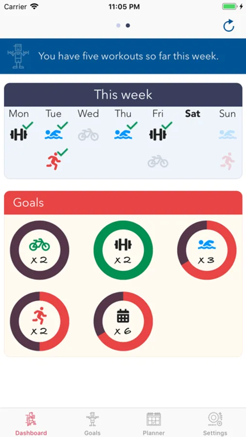 Let's get athletic! Track your weekly workouts, as you progress through your weekly goals.