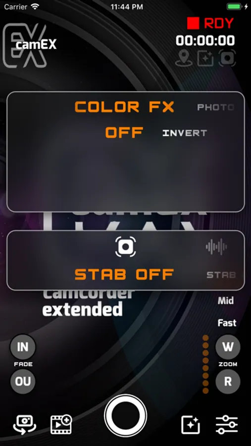 camcorderEX allows you to adjust the motorized zoom with three different speeds.