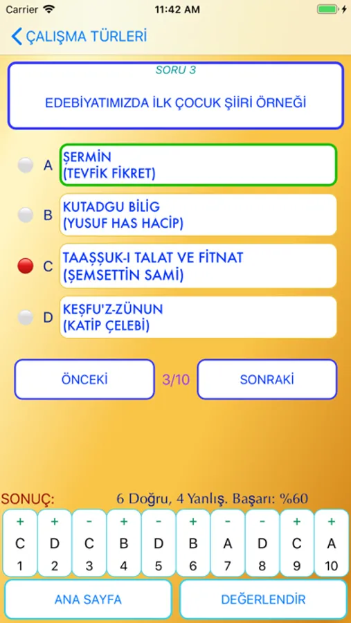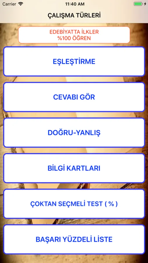 Edebiyatımızdaki ilkler hakkında bugüne kadar hiçbir bilginiz yoksa, Başarı Yüzdeli Liste bölümünden tüm bilgilere ulaşabilirsiniz. Bu bölümü arada sırada okuyabilirsiniz. Bu okuma size bir aşinalık kazandıracaktır; ama %100 öğrenmeyi bu şekilde sağlamanız çok zor! Uygulamamızdaki diğer bölümleri kullanarak bilgileri kalıcı hale getirebilirsiniz.