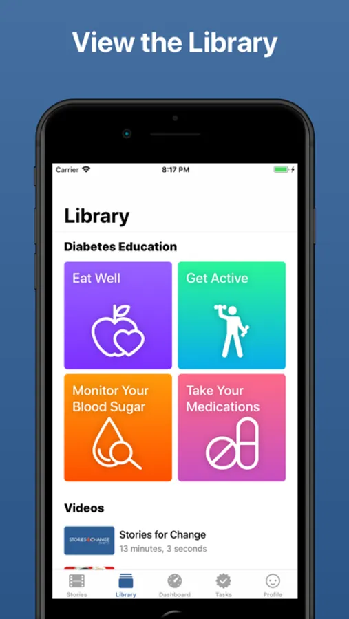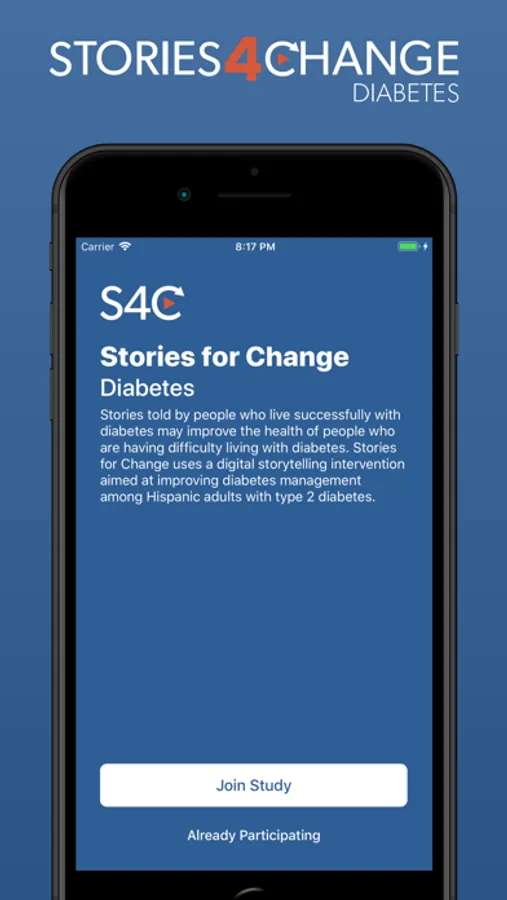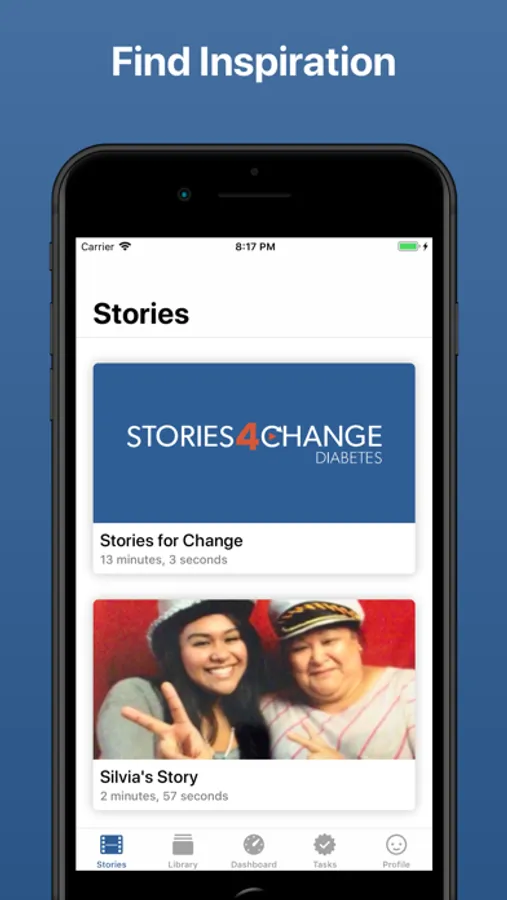 The Stories for Change app contains stories told by people who live successfully with diabetes which when viewed may improve the health of people who are having difficulty living with diabetes. Stories for Change uses a digital storytelling intervention aimed at improving diabetes management among Hispanic immigrants and refugees with type 2 diabetes.