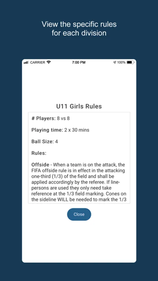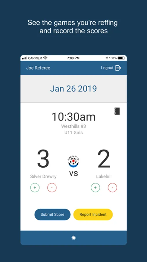 An app designed for referees from the JDF Soccer Association. Login to view the games you're refereeing this week, record the game score, check the division rules or submit an incident that happened during the game.
