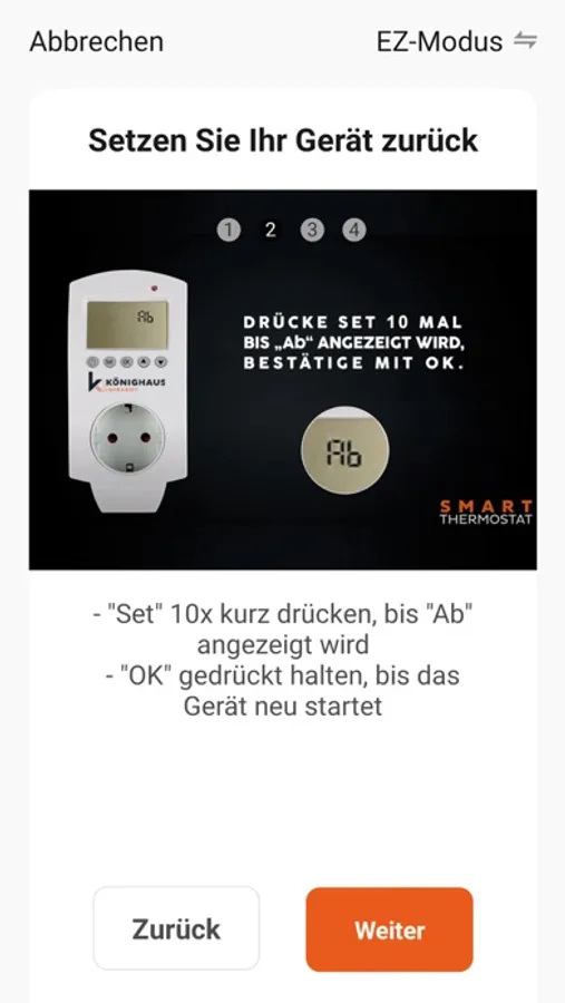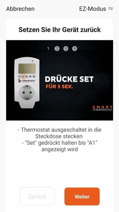 1. Reset des Smart Thermostats: