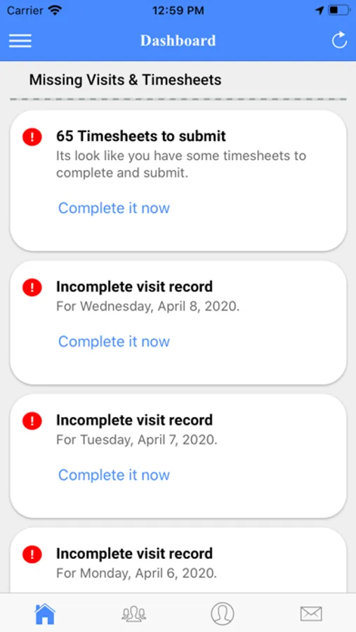 With the tap of a finger, your caregivers can start a scheduled or unscheduled visit, stop and document the visit, review the visit details, electronically sign and submit the visit, and more.