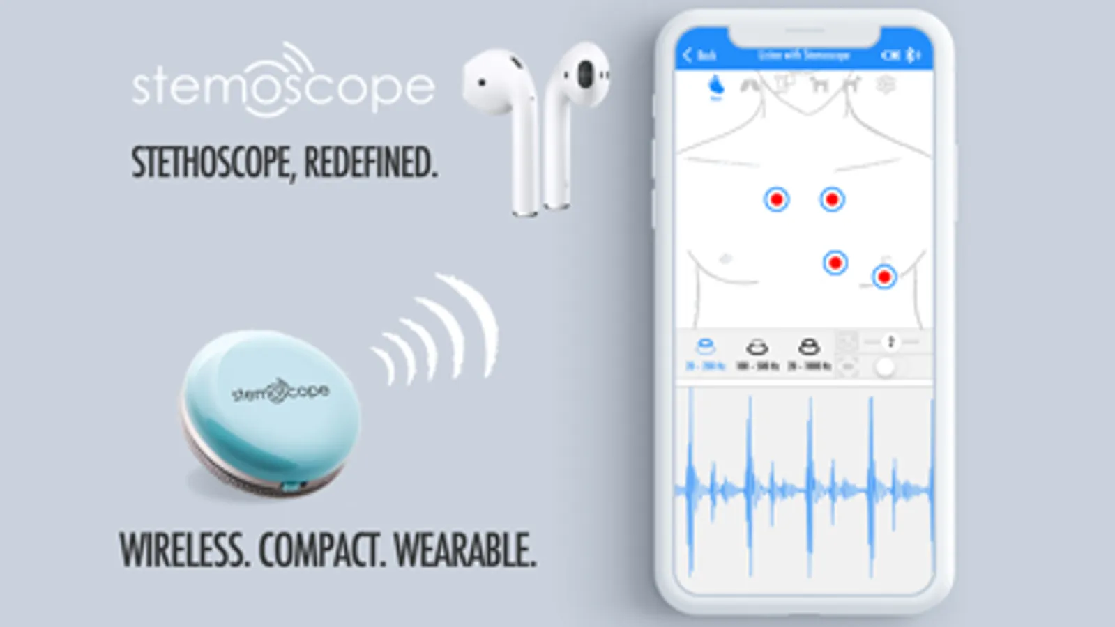 Stemoscope detects sounds and transmits them wirelessly to your smart devices, phones or tablets, eliminating the cumbersome tube of the traditional stethoscope. A user can choose either a wired or wireless earphone to listen to these engaging sounds.