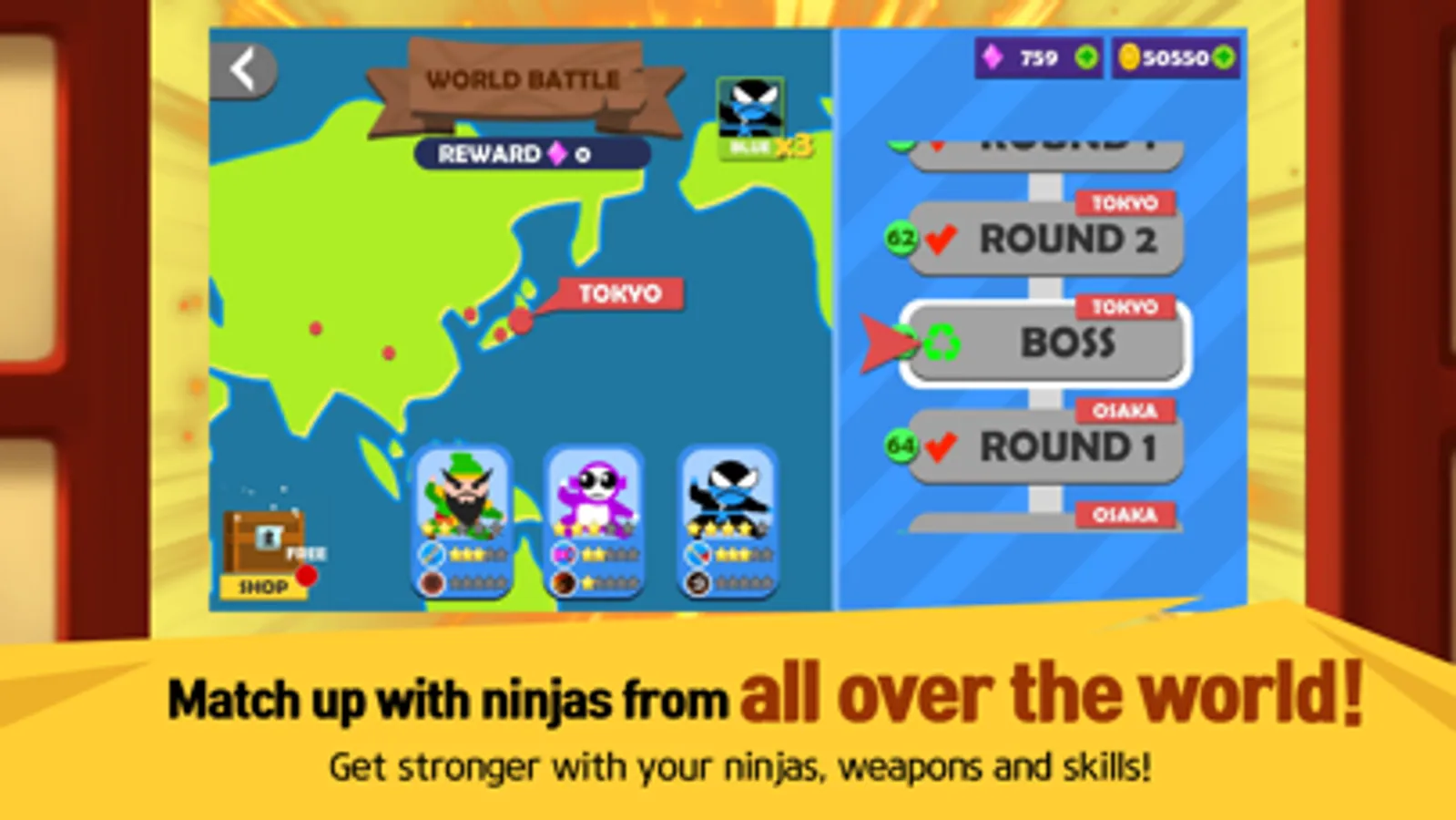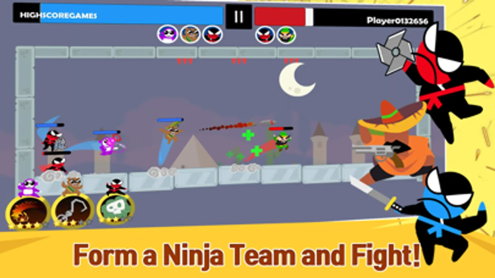 - Team Battle: Build a ninja team and play 3vs3 showdown.