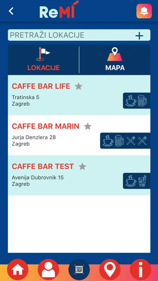 Aplikacija prikazuje lokacije koje omogućuju skupljanje bodova. Bodovi se skupljaju skeniranjem QR koda na računu, te se tako svako piće ili hrana s računa pretvara u bodove.