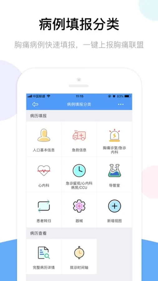 合乐胸痛中心(以下简称CPCS系统)是胸痛中心流程化智能平台,集成动态心电、血压、血氧、血糖、肌钙蛋白、BNP等生命体征监测 设备,实现数据的实时采集和远程传输。全区域的时钟同步系统让患者就医全程精准无误,通过时间轨迹系统自动跟踪填报数据,同时自动同步到国家胸痛中心,为胸痛中心提供可靠的质控依据。另外合乐胸痛中心系统通过 急救模块、智能电子病历系统、实时视频交互系统、远程医学影像诊断系统、远程数据分析系统等技术手段为胸痛患者提供快速而准确的诊断,危险评估和恰当的治疗手段,从而提高胸痛的早期诊断和治疗能力,减少误诊和漏诊,避免治疗不足或过度治疗,以降低胸痛患者的死亡率、改善临床预后。