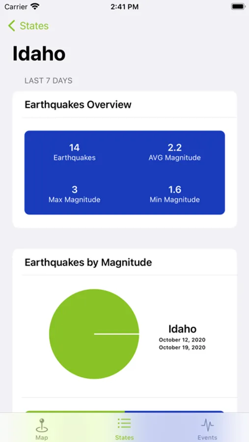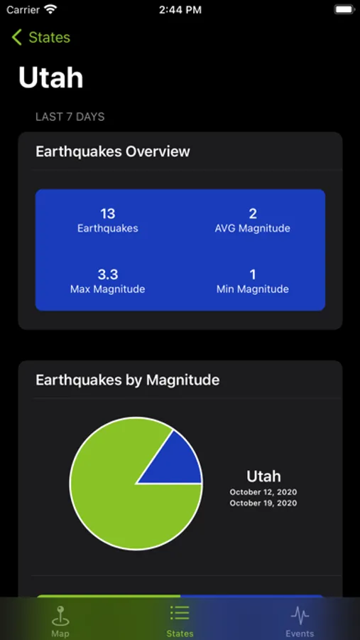 Earthquake USA delivers notifications, statistics, maps and lists of the latest earthquakes published by U.S. Geological Survey.
