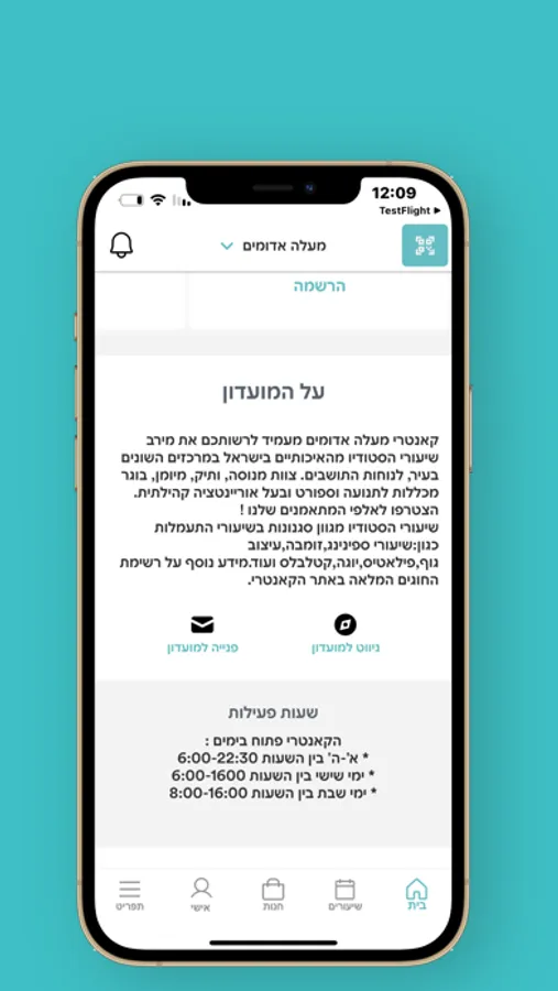 האפליקציה מאפשרת רישום לשיעורי הסטודיו השונים,צפייה במערכת השיעורים המעודכנת בכל עת כולל עדכונים על שינויים, סימון שיעורים מועדפים וקבלת עדכונים שוטפים לגביהם, צפייה בפרסומים של אירועי המתנ"ס השונים, תזכורות לאימונים ביומן ועוד..