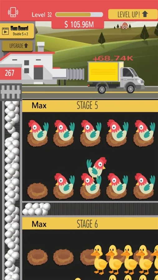 Start a most profitable game of growing eggs in an advanced egg farm of the world. Amazed yourself in a very exciting idle game. Grow hens and boost up the eggs production to build the largest empire. Enter into a world of chickens and hen farming to spend a super amazing fun time.