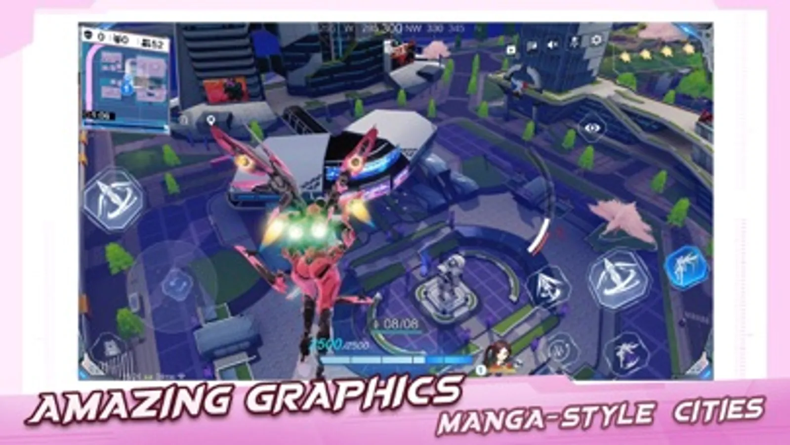 Pilot Mecha through every corner and between the highrises of a contemporary ACG Japanese-style cityscape. From a pretty lass with double pony tails to a suave, winsome man, there's a parade of characters waiting for you to discover and unlock.