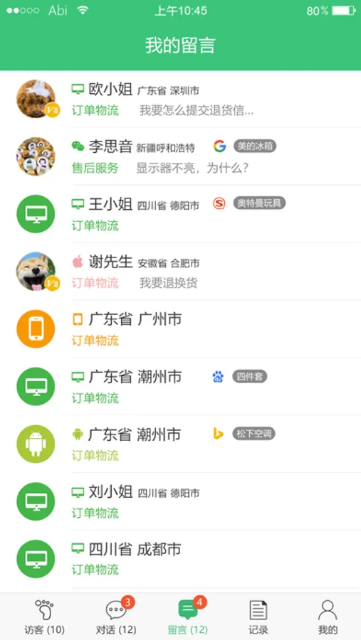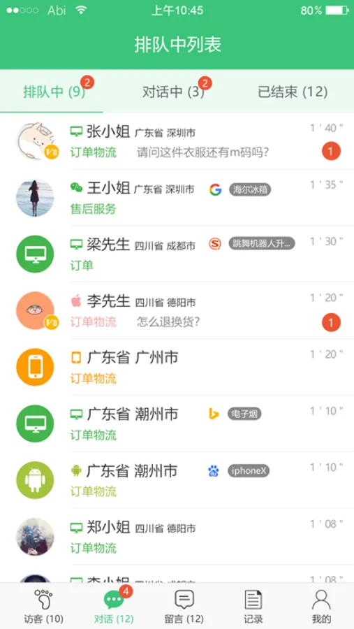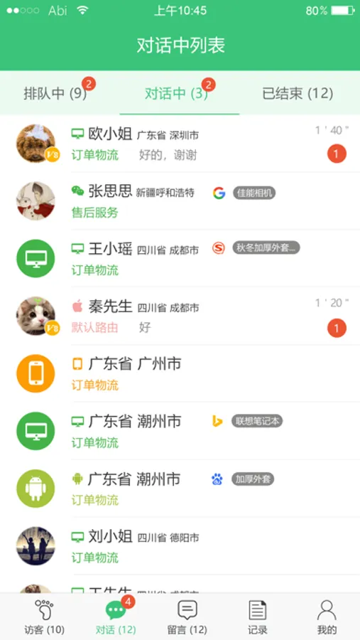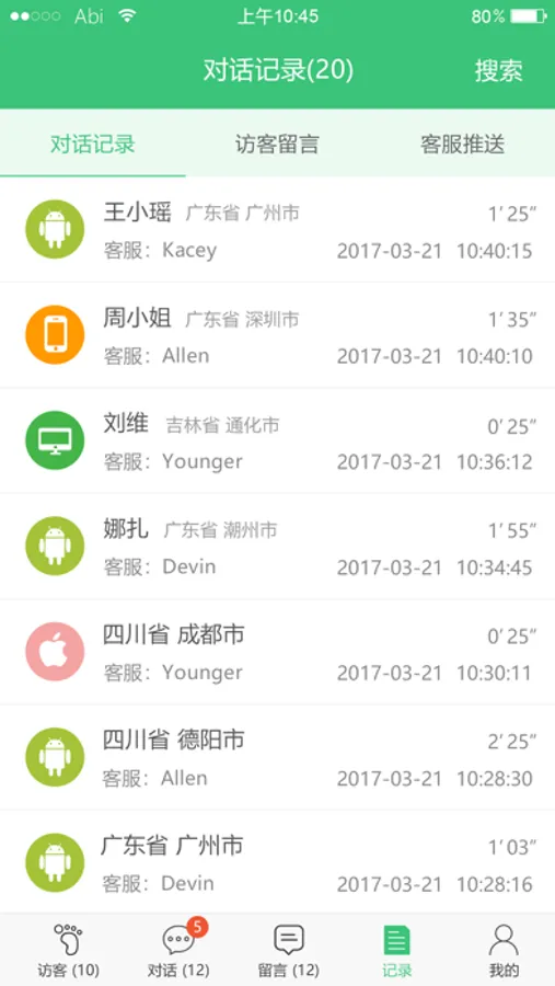 7、多维度分析:通过对趋势、来源、受访、访客、客服、对话等多维度全方位的分析,多维度数据助力企业决策有的放矢。不同岗位、职位所需报表定制,摆脱每天繁琐的数据收集、整理。监控随时随地,考核轻而易举。