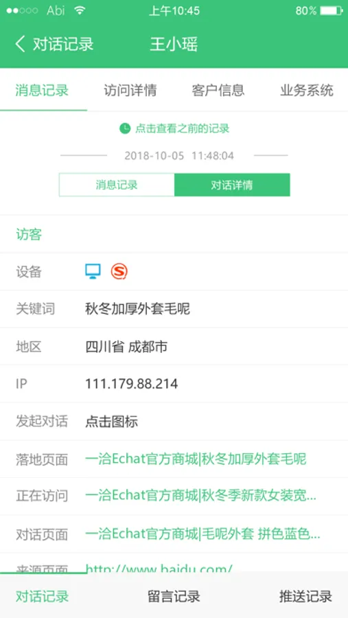 「Echat」一洽客服系统,以“专业人工客服系统”和“高级智能业务机器人系统”为基础,通过更开放的API,全方位整合客户自身业务系统,同时支持私有化深度定制开发,以满足不同企业的众多场景应用。以“让咨询更简单,让服务有温度”为使命,专注行业15年不断深耕产品,目前主要服务于电商、网购、外贸、高新科技、基金、保险、金融、游戏、医疗、教育等行业。