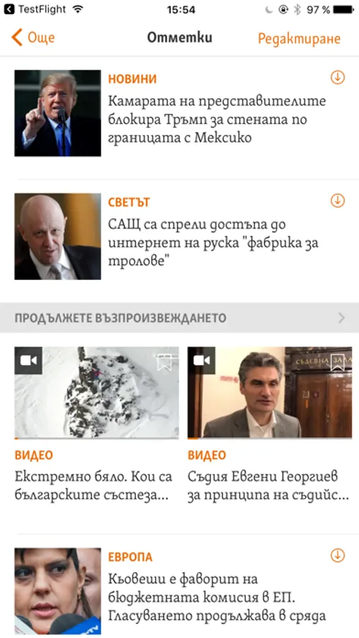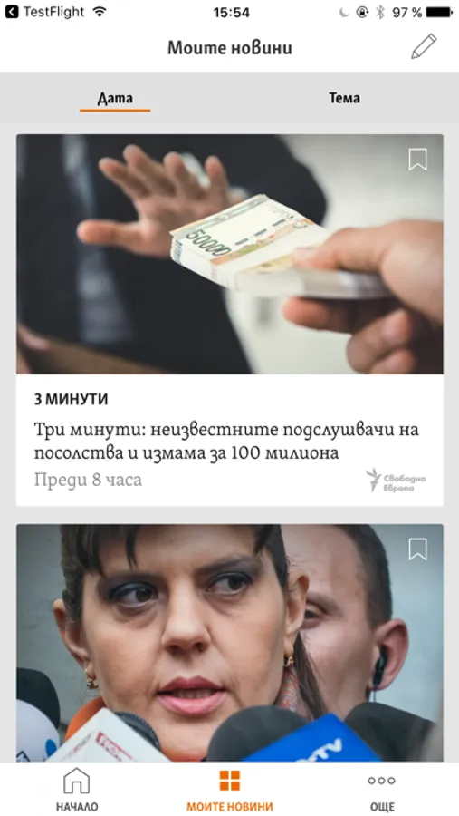 Безплатното приложение на Свободна Европа ви дава възможност да четете и гледате най-интересното от България и света. Можете да преглеждате последните новини, да задавате теми, за които да получавате приоритетно информация, както и да записвате статии и видео, които да четете и гледате по-късно и без интернет.