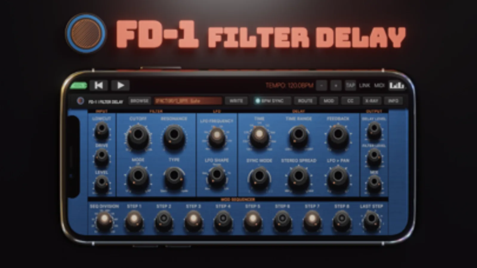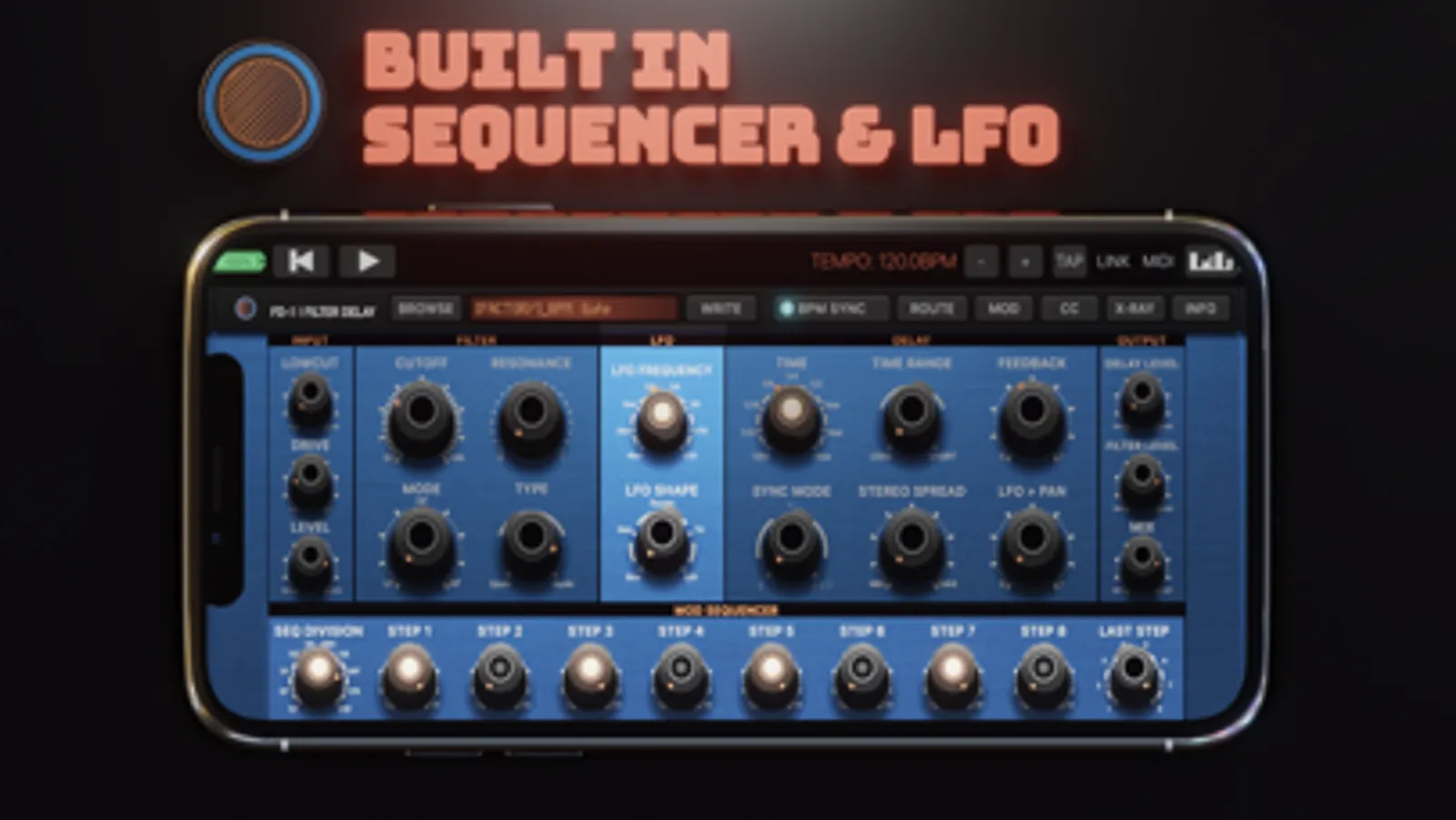 Built-in Step Sequencer and Low Frequency Oscillator serve as modulation sources and are ideal for creating rythmic filter sequences either free running or tempo-synced to a host application.