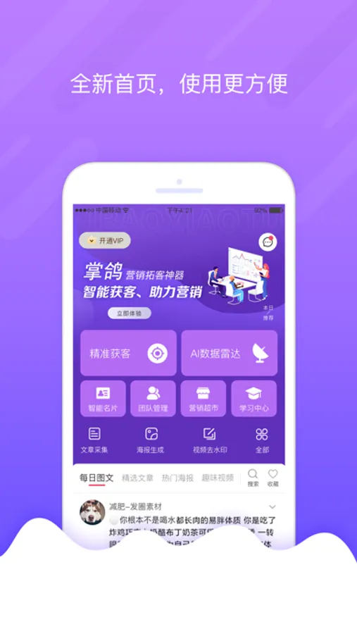 第一、内容营销工具,包括阅 读、知识、采集等,采集成为自己的文章你可以通过掌鸽不断创造内容从外部吸引顾客.