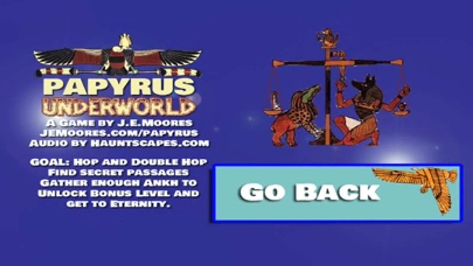 The game play of Papyrus Underworld is simple enough. Tap and Double Tap to hop over obstacles so the Goddess Isis can lead Queen Nefertari to her never ending banquet in Eternity.