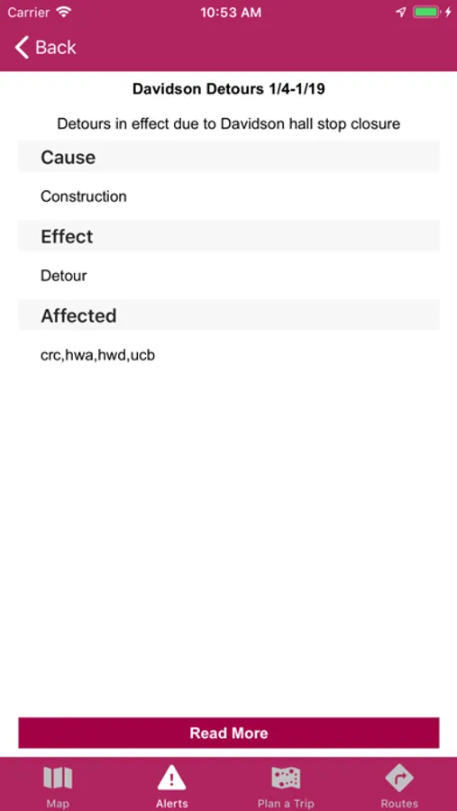 * NEW: View all active BT alerts regarding detours, route changes, and emergency information