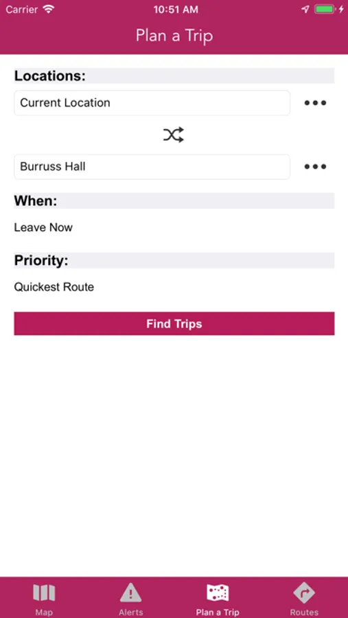 * Select from a list of many pre-loaded local destinations and bus stops for simplified trip planning