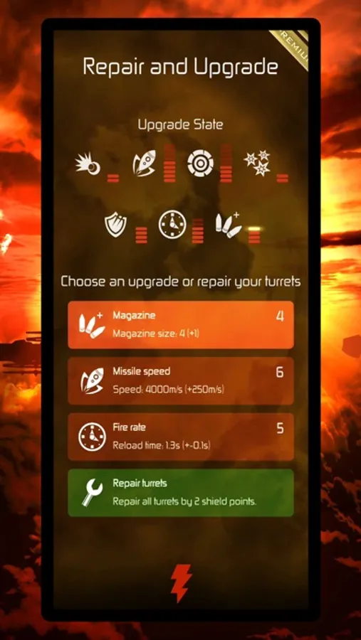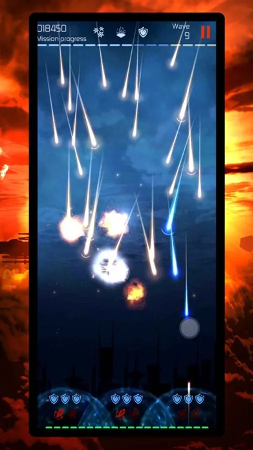 Different missions, each with several difficulty levels and a unique ambience, are waiting for you. High-class atmospheric graphics and stunning sound effects guarantee an intensive gaming experience. Destroy all incoming missiles and protect your base from destruction until your mission is accomplished.