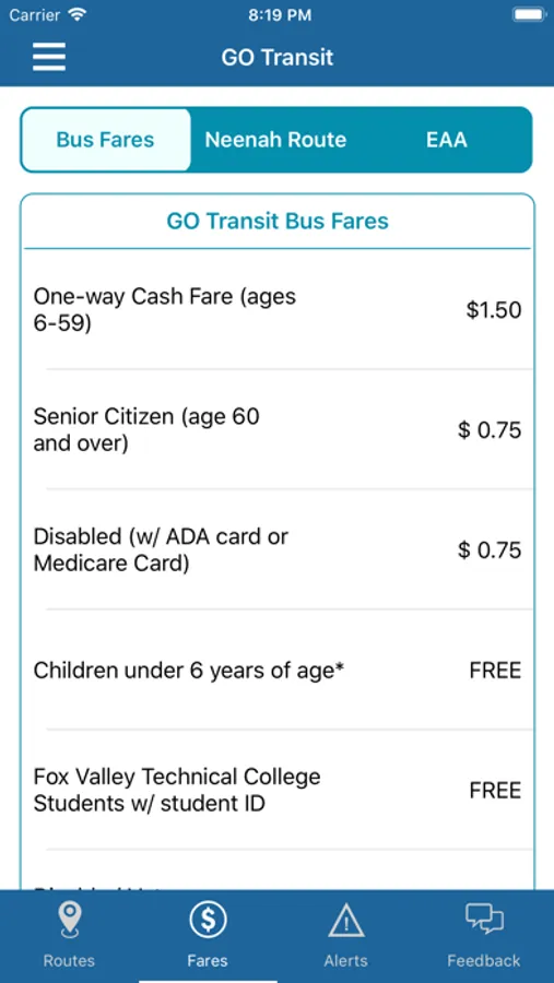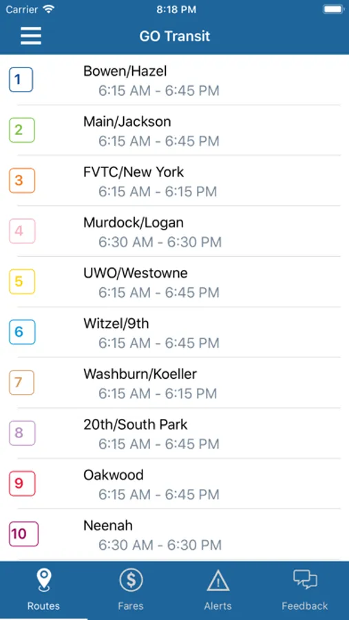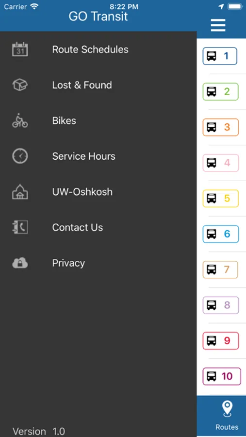 GO Transit Oshkosh provides real-time mapping of all active buses on their routes in the greater Oshkosh, Wisconsin area. Route times, fare information, alerts, bus stop locations and detailed route information are all available with the GO Transit Oshkosh app.