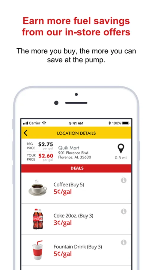 FIND DEALS. Scroll through the app to view all available cents-per-gallon and free product offers. Plus, Quik Club members save 5¢/gal for every $25 spent in-store*.