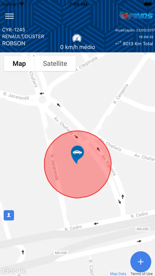 Através do rfinds o usuário pode localizar seu veiculo em tempo real, buscar histórico de rotas do veículo em até 24 horas, enviar sinal de bloqueio ou criar uma "cerca virtual" de segurança em que o usuário é notificado caso o veículo saia deste campo.