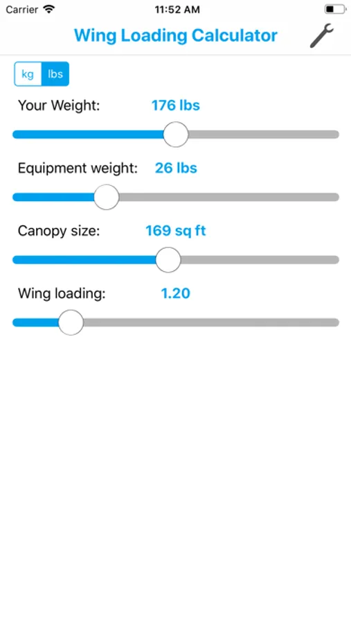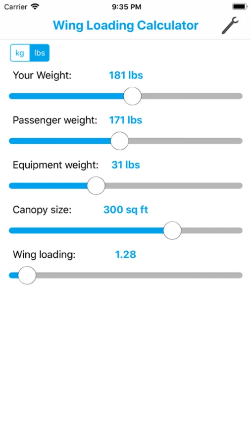 With this app you can easily calculate your wing loading for skydiving. Additional modes for tandem or extended weight calculations are available.