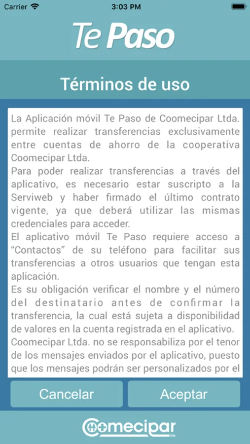 Aplicación para transferencias entre socios de la Cooperativa Coomecipar Ltda.