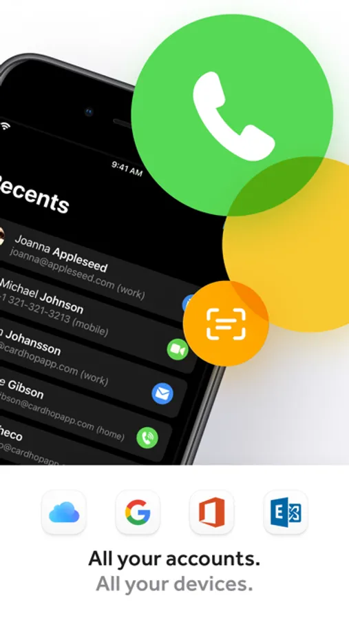 • Business card scanning: Use your camera to take a picture of a business card and Cardhop will automatically create a new contact