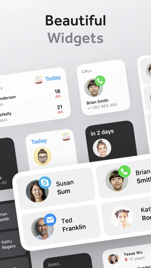 • Beautiful widgets to let you instant use and interact with your contacts (some widget actions require a Flexibits Premium subscription)