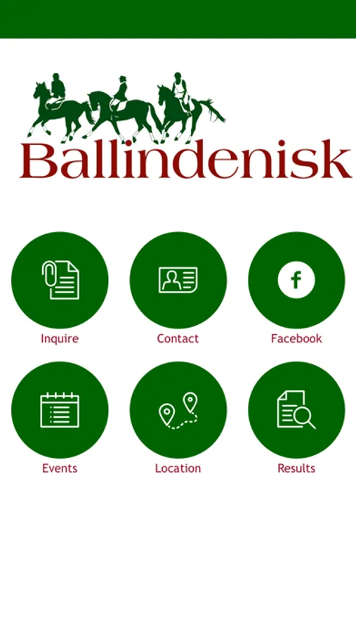 Ballindenisk application for information about Events at Ballindenisk, results service for equestrian competitions, equestrian venue, national and international competitions, competitions include Horse Trials, Polo, Pony Club, Point 2 Point, Dressage, Show Jumping