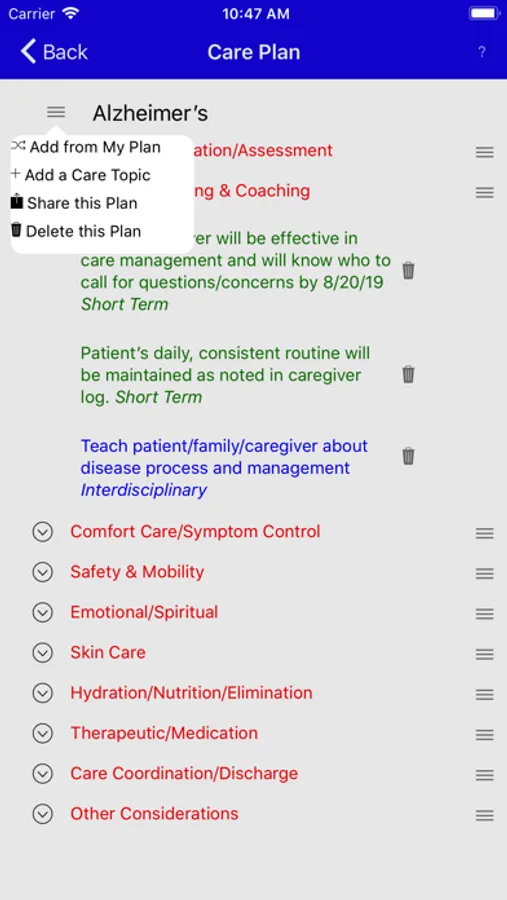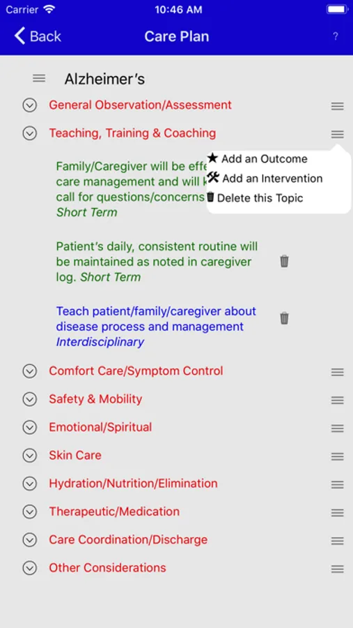Care Planning Made Easy simplifies creating care plans for practicing healthcare professionals in Nursing and other disciplines. Compose Plans structured with Problems or Care Topics, Goals or Outcomes, and Interventions. Suitable for Nurses, Physical and Occupational Therapists, Dietitians/Nutritionists, Counselors, Hospice disciplines, and other healthcare providers who must plan interventions for addressing/resolving patient/client challenges. Ideal for students in these fields too!