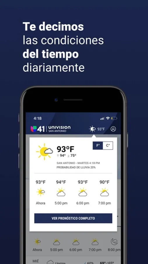Pronóstico del tiempo con información del clima y condiciones meteorológicas.