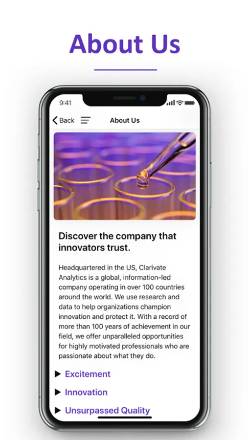 Welcome to your Clarivate Benefits Plus app! If you would like to help the world’s top universities, corporations, and brands deliver the next life-changing idea, Clarivate Analytics is the place to be. Your Clarivate Benefits Plus app is built to power your experience with access to company communications, benefits, investments, events and resources to easily navigate everything you need in one place. Plug into Clarivate and discover the innovator inside you.