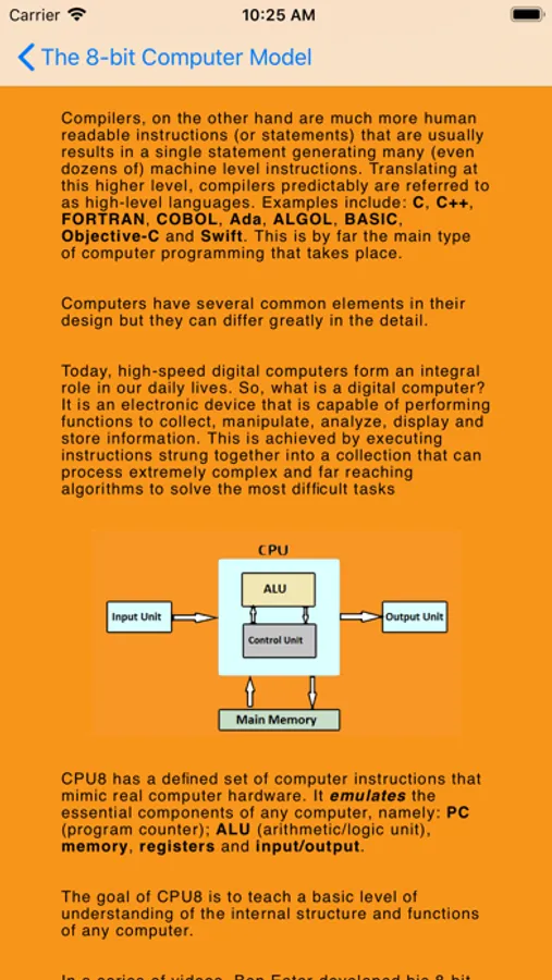 In addition, CPU8 contains an assembler that allows you to write programs and convert them into the machine language of the included simulated computer. A full programming manual is included.
